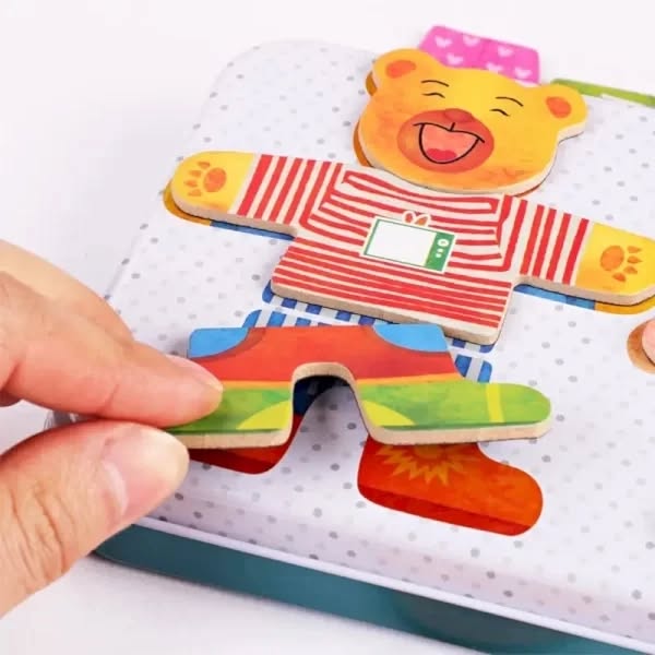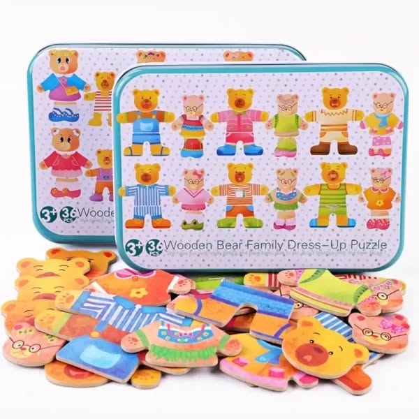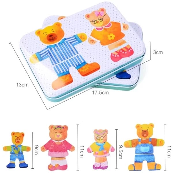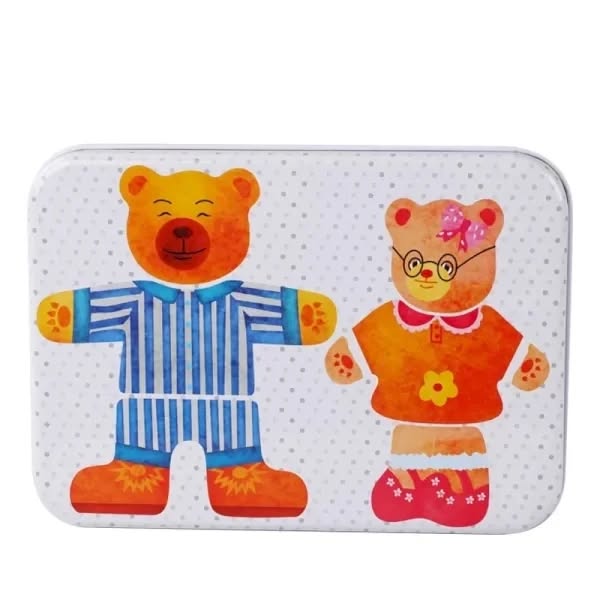 پازل مگنتی خانواده خرس با قوطی فلزی قطعات پازل مگنتی رو کنار هم قرار بدین تا مدل های مختلفی از خانواده خرس های بامزه را بسازید. این جورچین مگنتی قابلیت چسبیدن روی سطوح فلزی رو هم داره. این اسباب بازی یک انتخاب عالی برای کودکان بالای 3 سال می باشد. قطعات پازل از مقوای فشرده ضخیم ساخته شده و از کیفیت خیلی بالایی برخوردار هست. این پازل به دلیل داشتن طرح های خاصش هم به عنوان پازل کودکانه دخترانه و هم پسرانه کاربردی و جذابه!