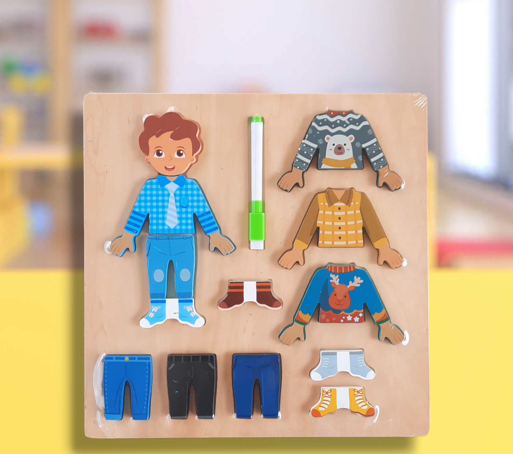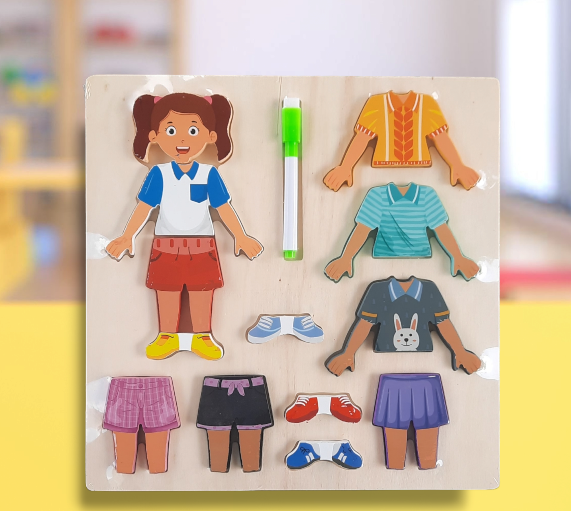 پازل چوبی تعویض لباس دختر و پسر،پشت وایتبردی به همراه ماژیک