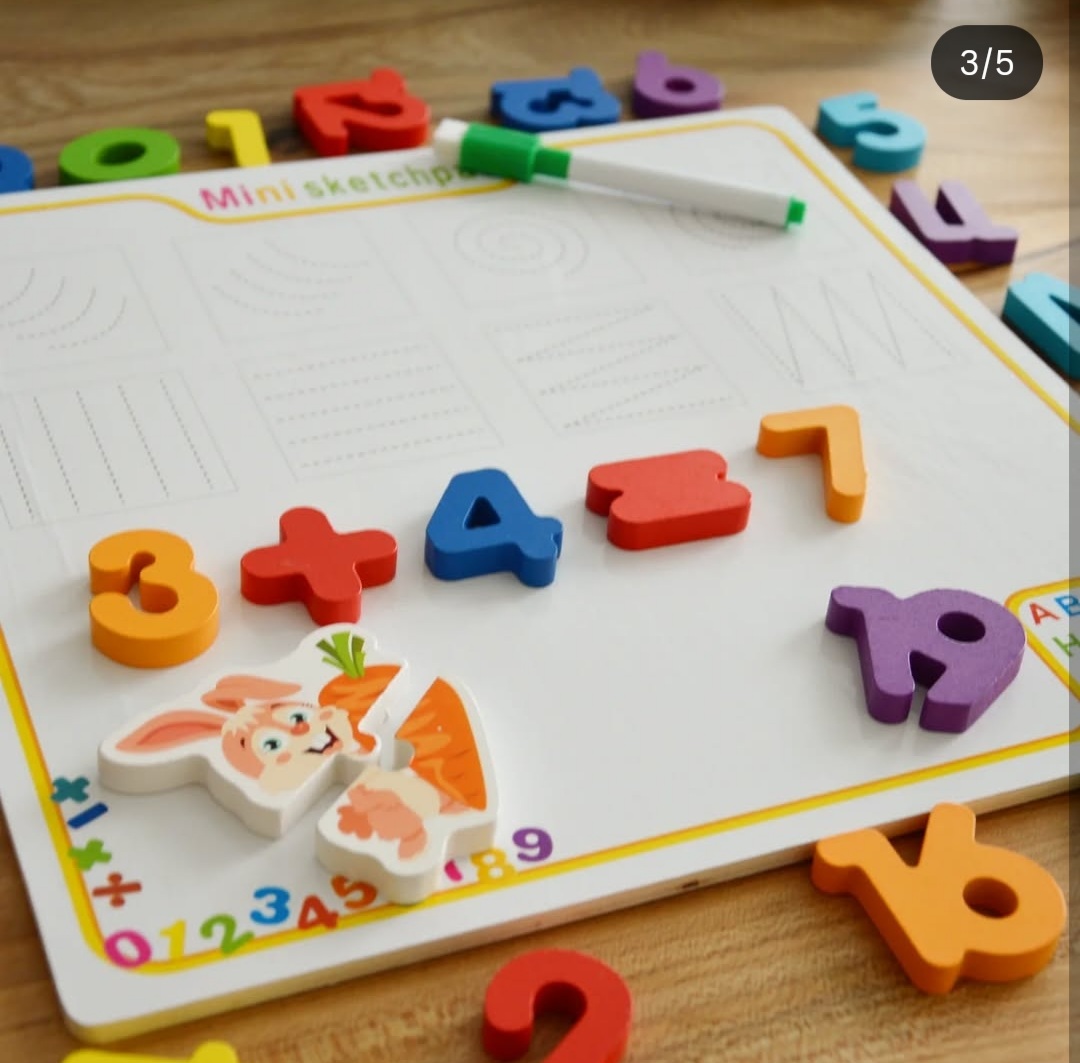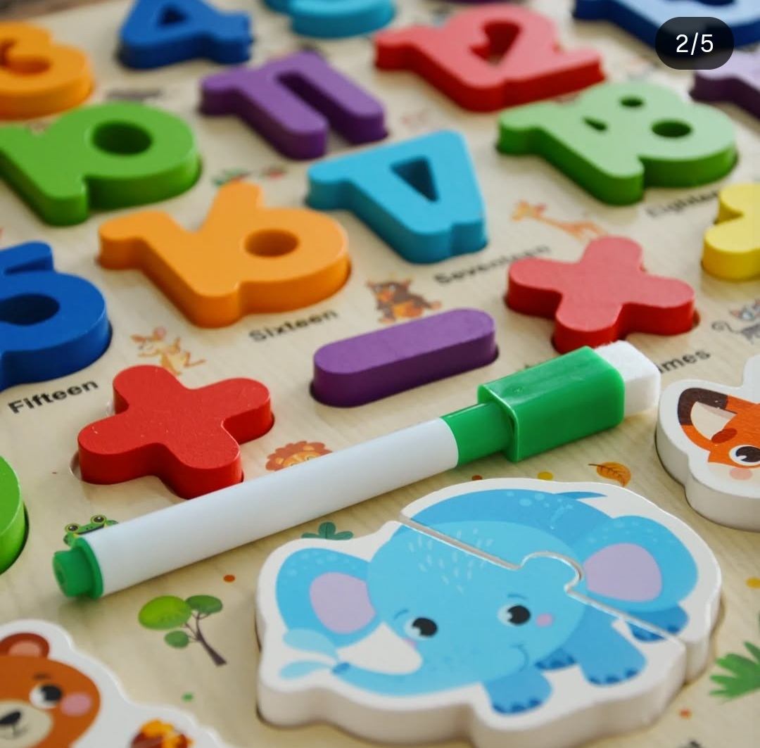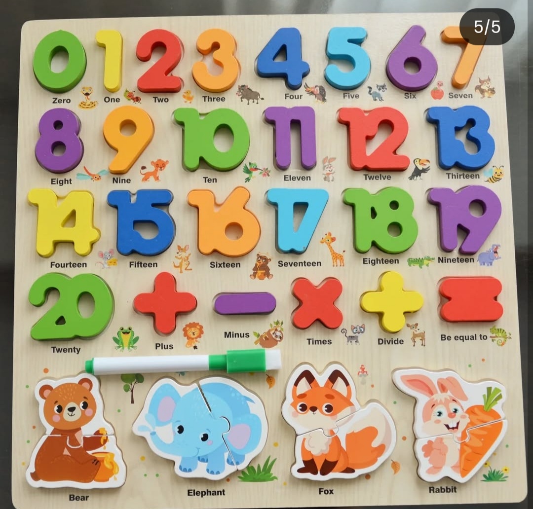 پازل چوبی جانمایی اعداد و حیوانات، مناسب بالای 2 سال،کیفیت عالی،پشت وایتبردی،به همراه ماژیک