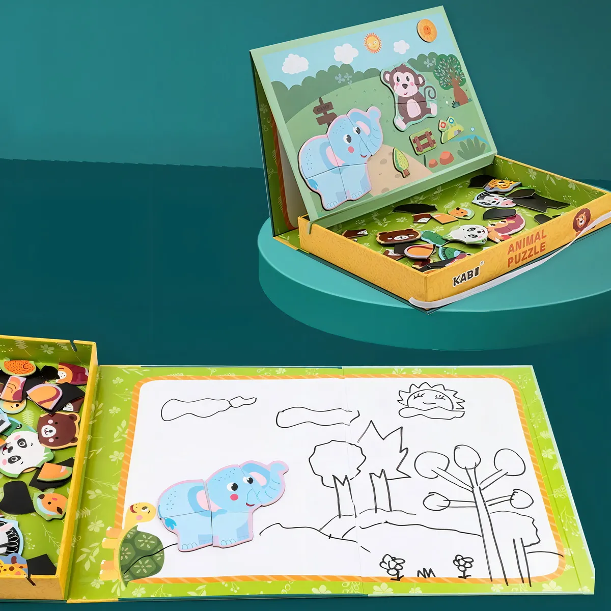 پازل مگنتی به همراه تخته وایت برد و فلش کارت و ماژیک