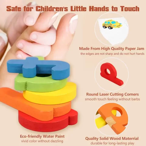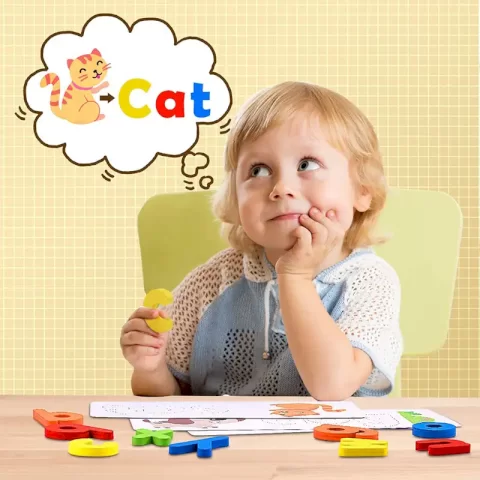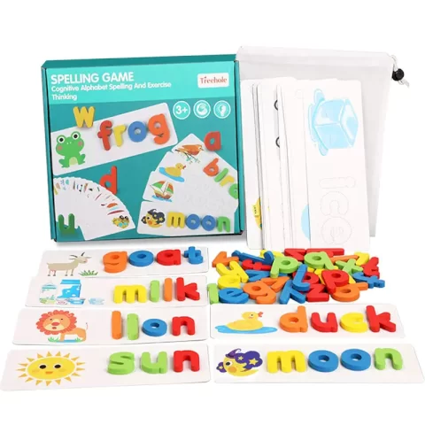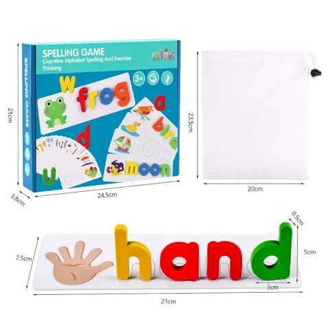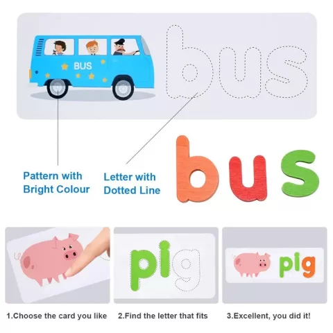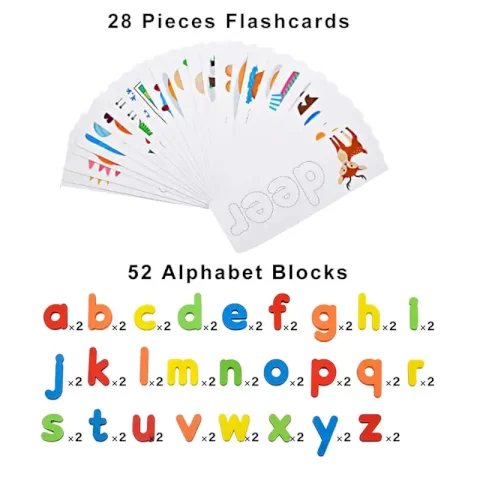 مناسب برای کودکان بالای 3سال،دارای 52 قطعه حروف الفبای انگلیسی چوبی رنگی و متنوع،دارای 28 عدد فلش کارت دورو،دارای رنگهای طبیعی و غیرسمی